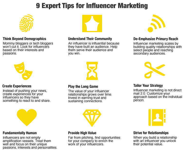 Toto je podstata marketingovej kampane influencerov, ale neobmedzuje sa len na túto časť. Nasledovníci influencerov sa na nich spoliehajú ako na odborníkov na danú problematiku, na ktorých sa môžu obrátiť so žiadosťou o radu. Podniky teda musia influencerov osloviť výhodami alebo platbami výmenou za oficiálnu dohodu o podpore značky.